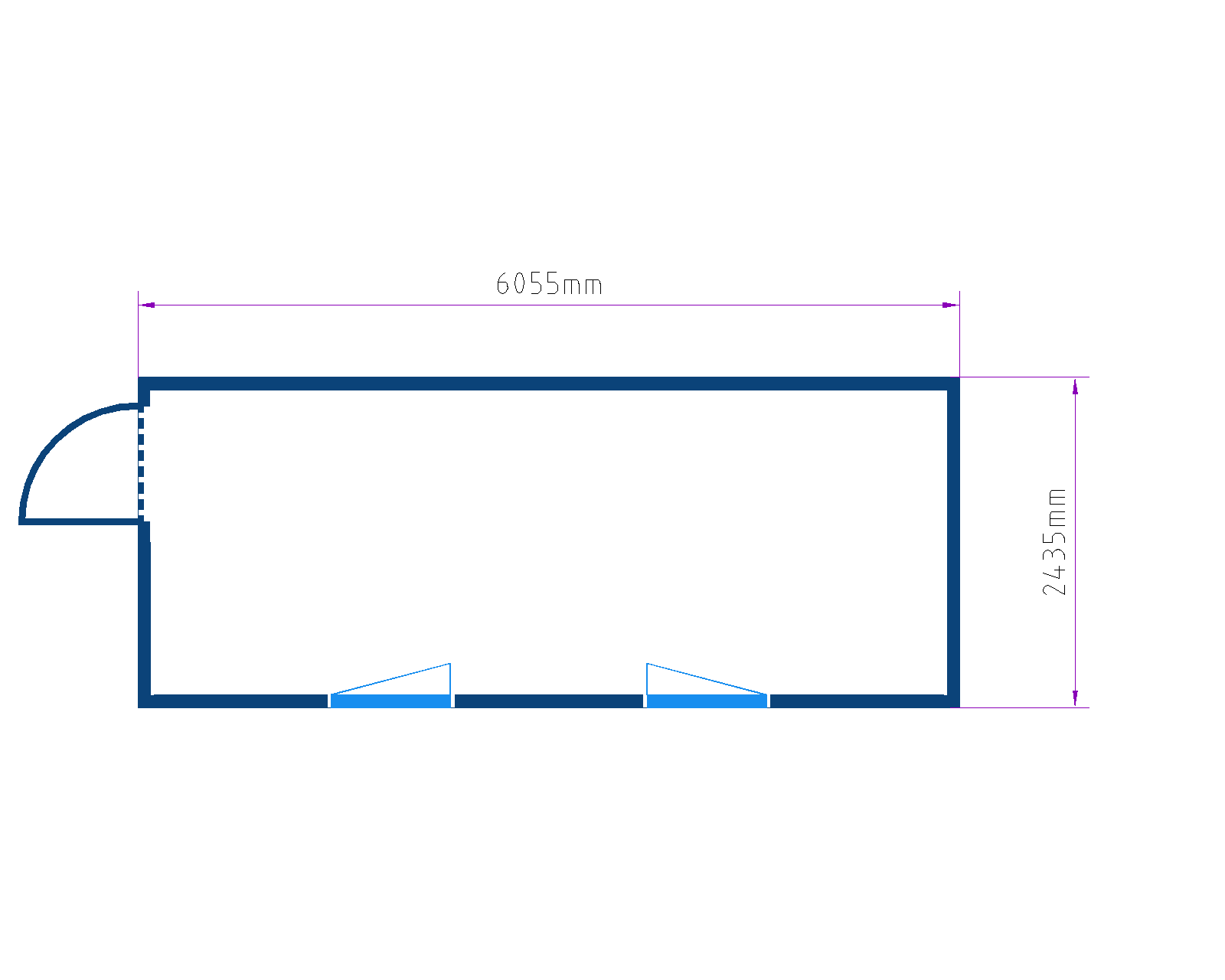 Bungalow offrant 14,7 m² (6,06 m x 2,44 m). Isolation laine de verre 60 mm murs et sol, 100 mm en toiture. 2 fenêtres oscillo-battante. 1 porte ouvrant sur l’extérieur. 2 rampes d’éclairage LED. 2 prises électriques doubles. Chauffage convecteur électrique 2kW. Décor intérieur blanc, revêtement de sol gris. Marquage CE et conformes aux normes incendie. Disponible rapidement sur dépôt.