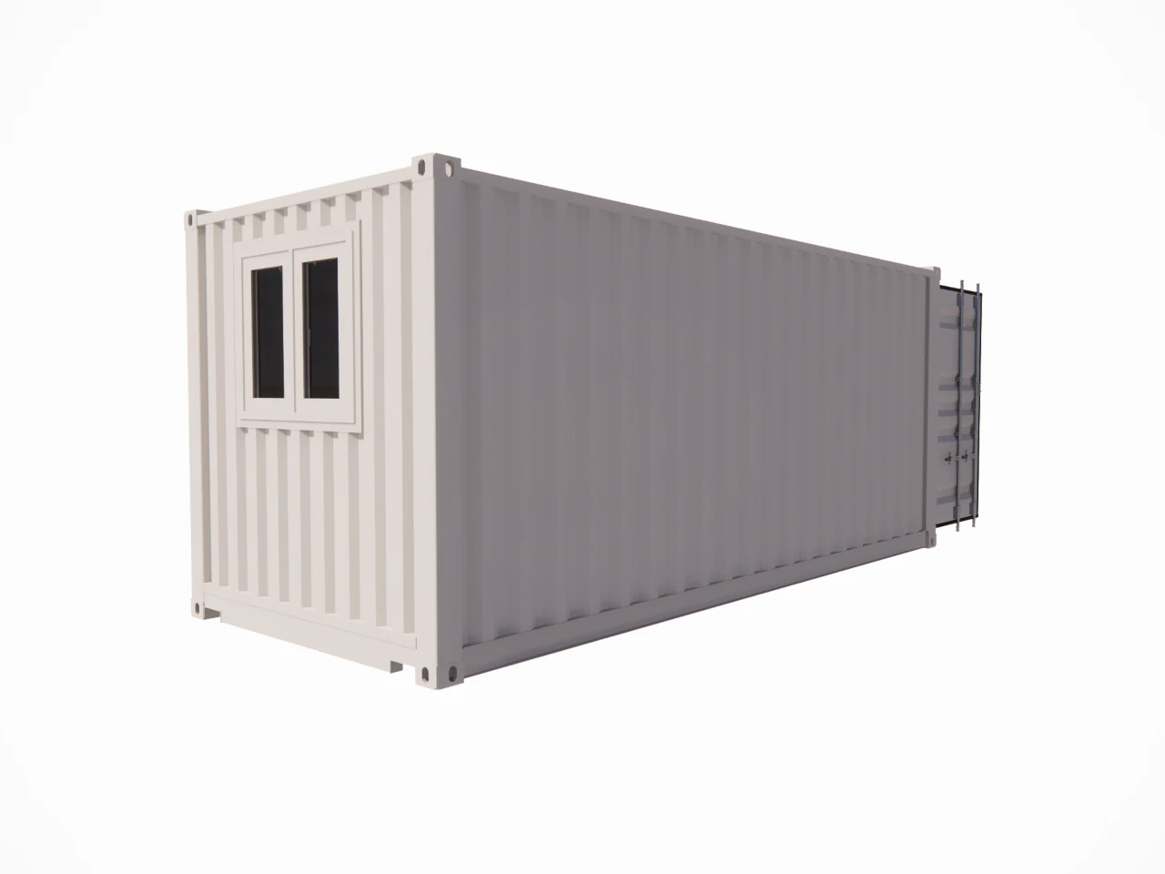 Container doté de 2 espace. Une zone de stockage accessible par les grandes portes du container. Une zone bureau doté d’une fenêtre accessible par une porte de service.